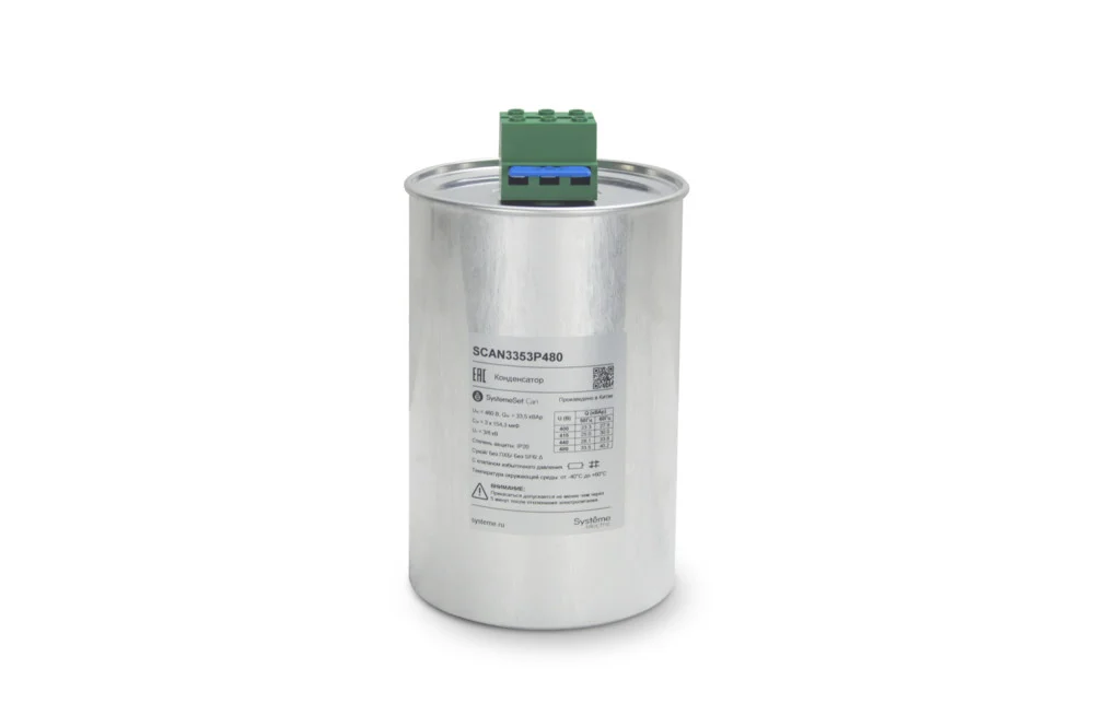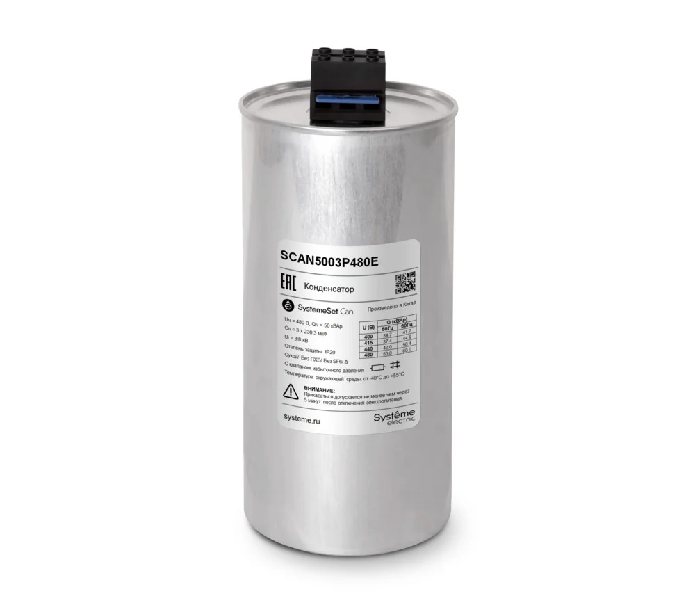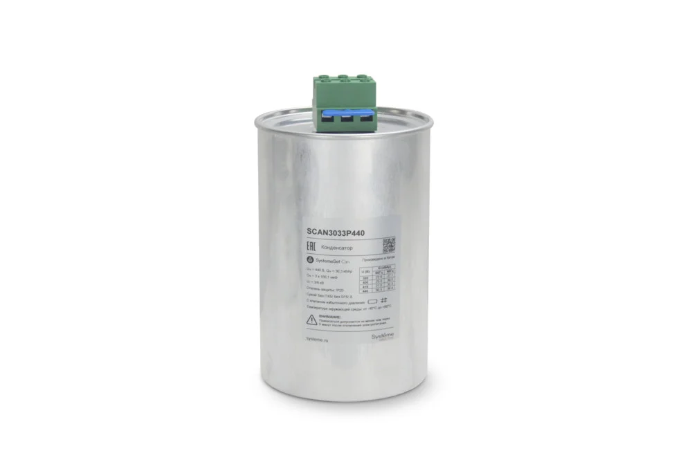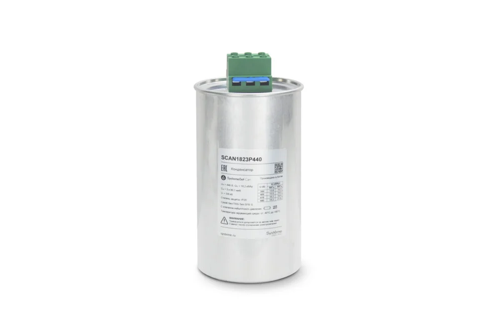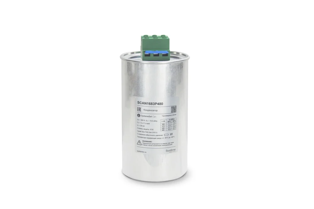- Силовые конденсаторы для коррекции cosφ 0.5–100 kvar на секцию, номинальное 230/400/480 VAC, подключение Δ/Σ, габариты шкафные