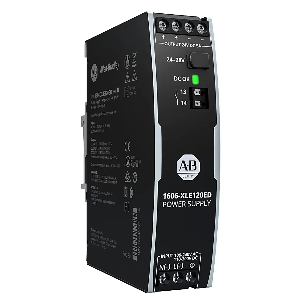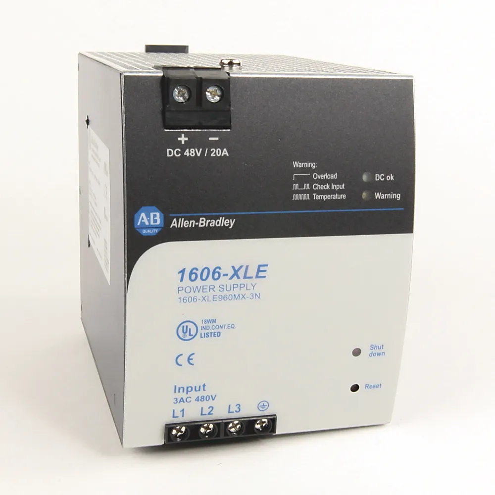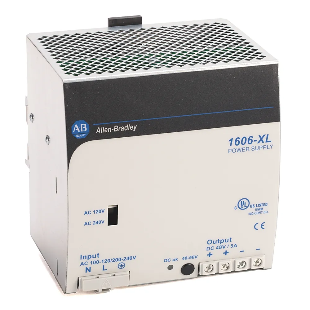 - Switched‑mode (DIN) — Bulletin 1606: Performance XLS, Essential XLE, Compact XLP, Basic XLB; выходы 5/12/15/24/48 В, мощность 80…960 Вт, активный PFC и кратковременный «power boost» для пусковых нагрузок.