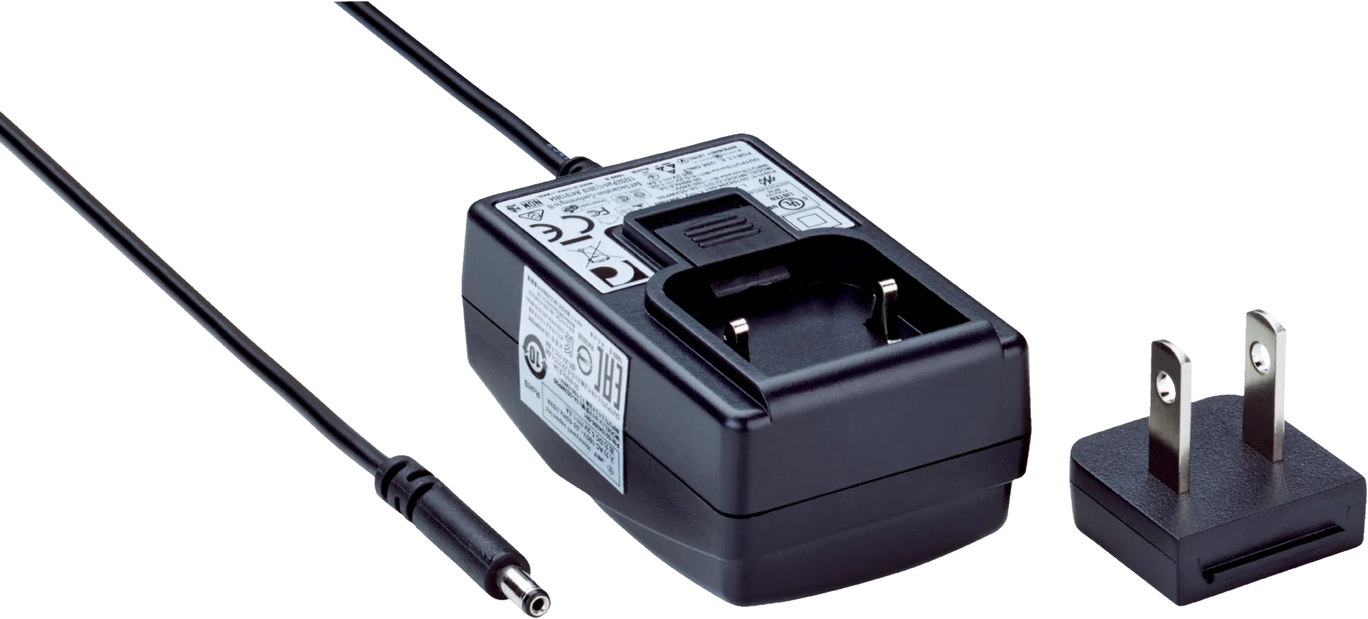 - PS50W / PS50WE — 24 В, ~2,1 А; компактный настольный/щитовой блок питания для питания отдельных модулей и зон контроля; простое подключение, IP20, подходит для питания датчиков и небольших контроллеров.