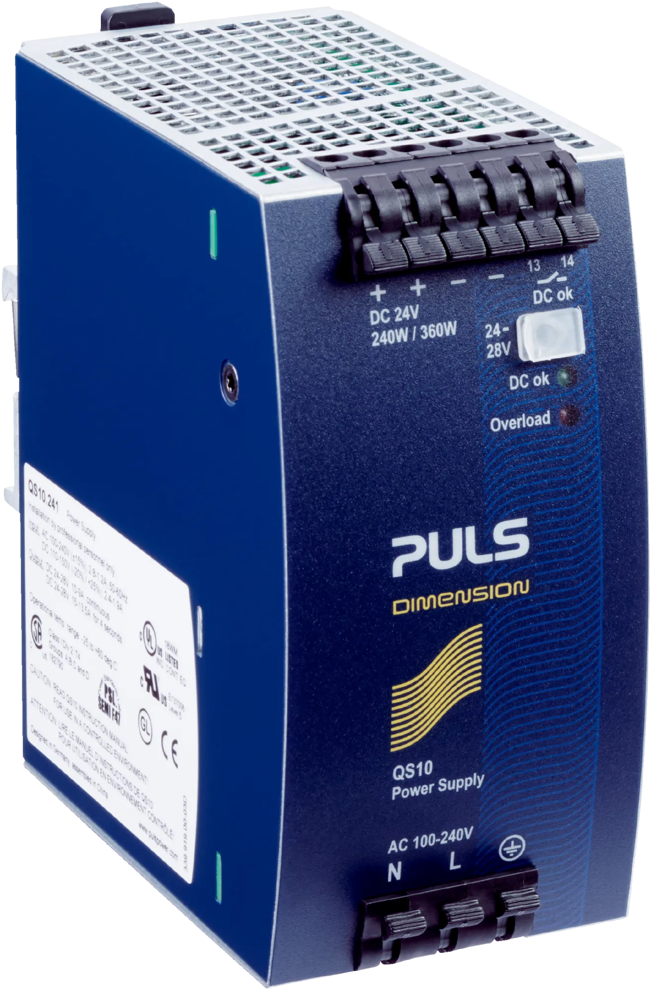 - PS95W / PS95WE — 24 В, ~3,9 А; усиленное исполнение для питания нескольких устройств в шкафу, тот же форм‑фактор с повышенной мощностью и защитой от перегрузки.