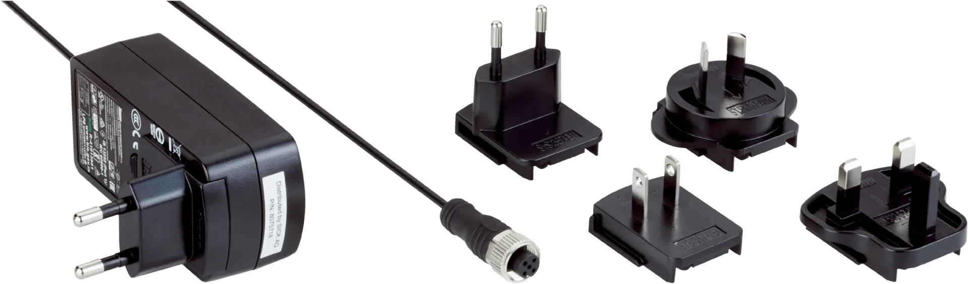 - OEM/специфические модули (артикулы типа 7022755, 2062249 и пр.) — маломощные блоки питания с преднастроенными кабелями/M12‑разъемами для конкретных сенсорных и оптических модулей SICK; используются как комплектующие при поставке оборудования.