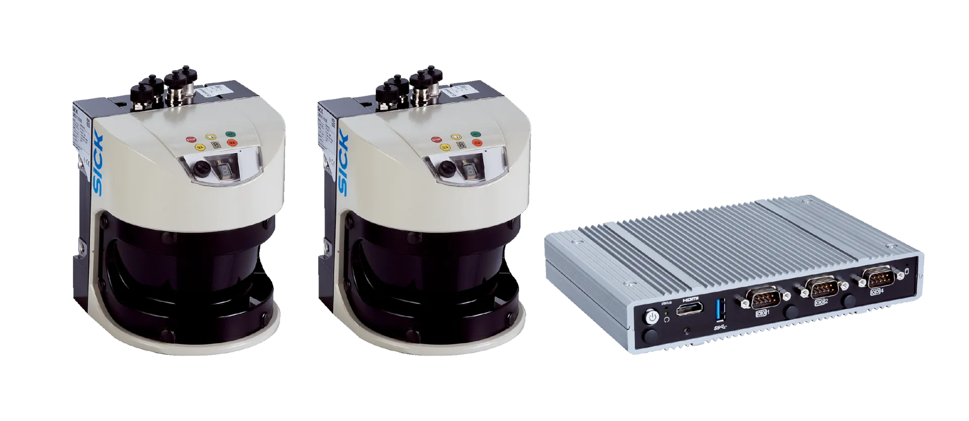 SICK сегментирует щитовую визуализацию по назначению: статус/сигнализация, указание оператора (pick‑to‑light), и простые дисплей‑модули/стойки для интеграции со сенсорами.