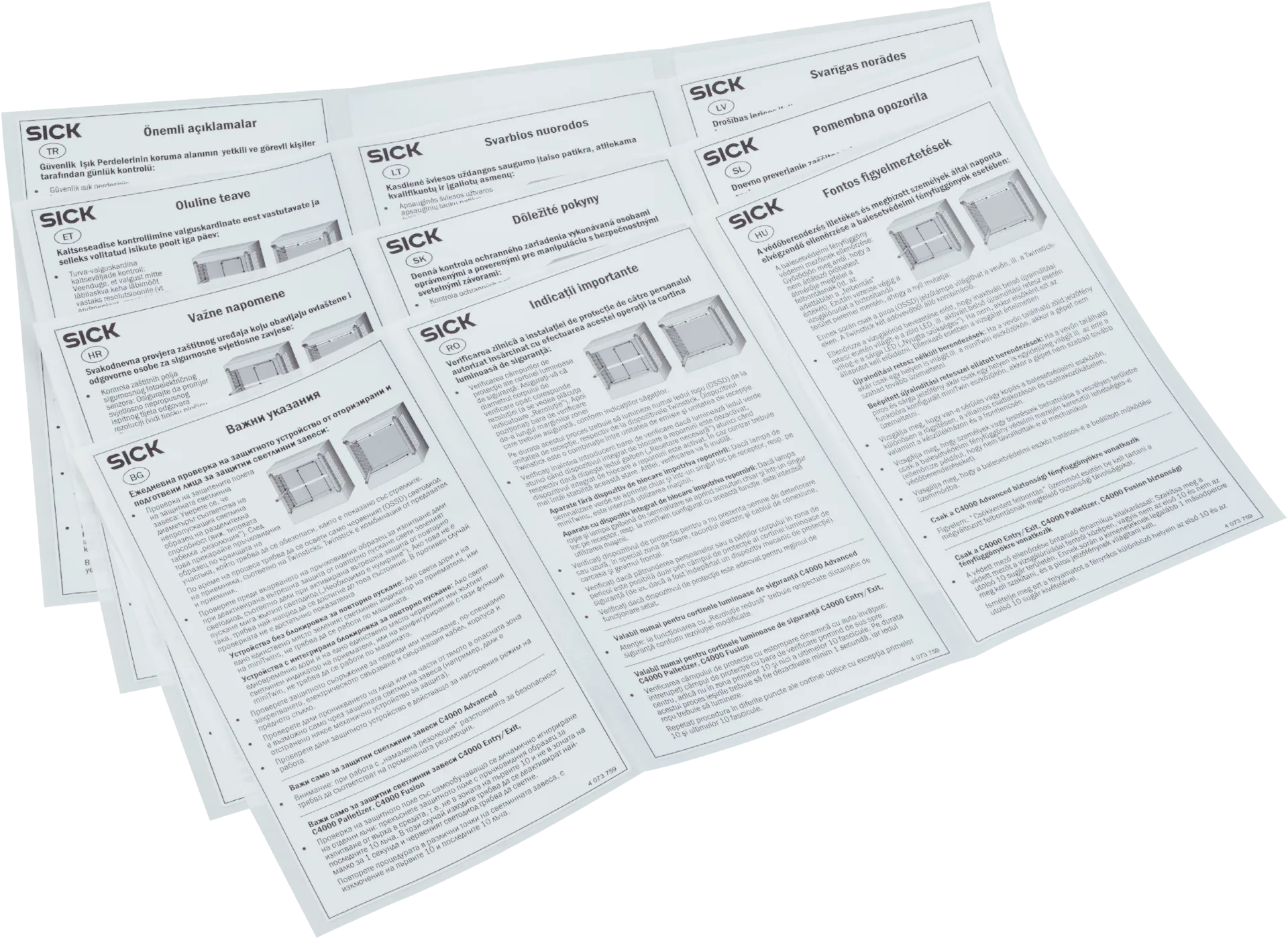 Типичные параметры для щитовых приборов SICK: питание 24 V DC (у ряда модулей), программируемые LED‑сегменты (до 20 сегментов у SLT), выбор цветов (до 21), степень защиты IP65, рабочие температуры примерно −25…+50 °C, звуковое сопровождение до ≈88 dB для buzzer‑модулей; для light‑grids — шаг луча 30/60 мм, рабочие высоты 60–420 мм, время отклика единицы мсек, интерфейсы PNP/IO‑Link. Устройства поставляются с документацией по IEC/EN‑стандартам и сертификатами CE/cUL.