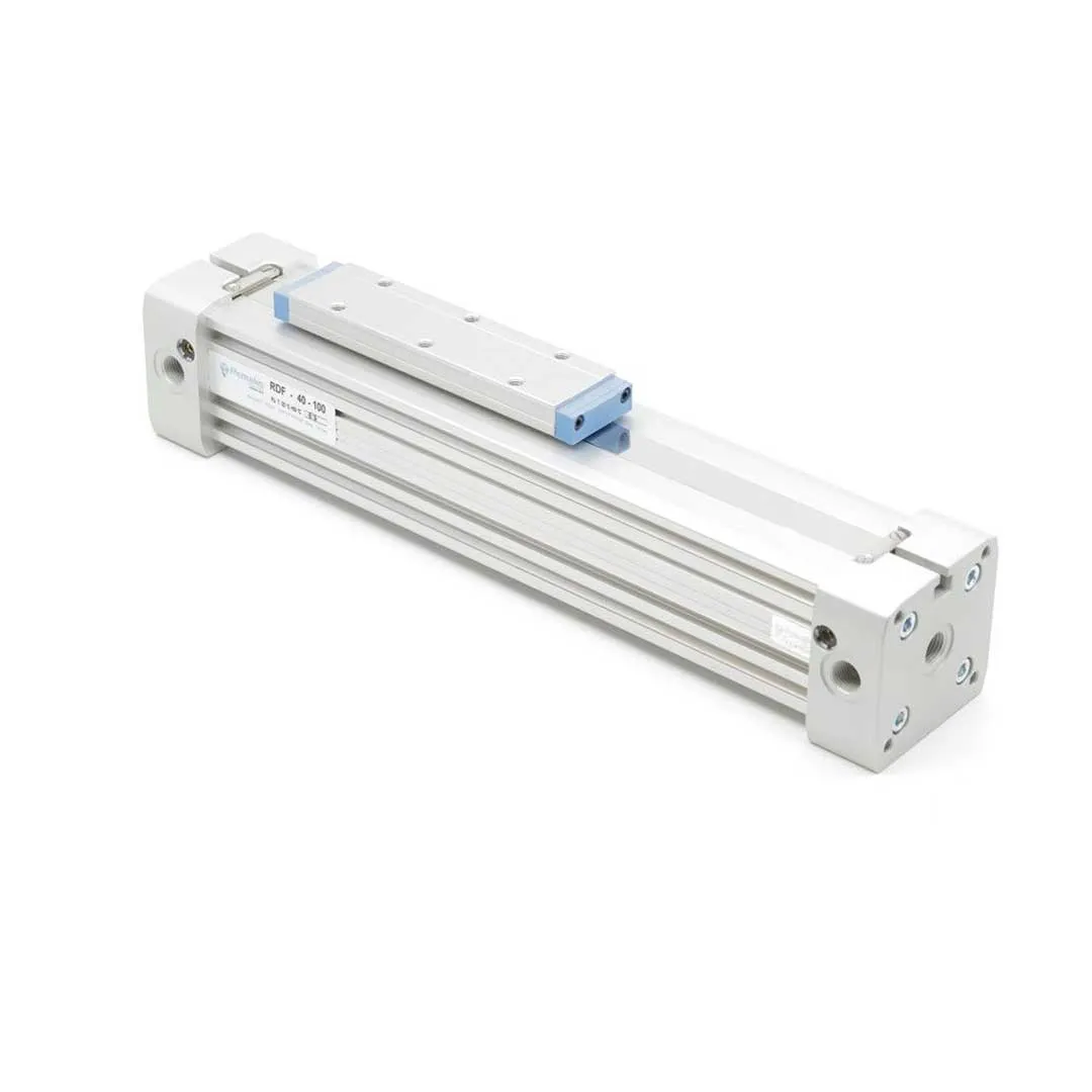 Пневмоцилиндры Pemaks RD работают на сжатом воздухе 1-10 бар (номинальное 6 бар), диапазон диаметров поршня 32-100 мм обеспечивает усилие от 250 Н до 4000 Н в зависимости от давления. Корпус из анодированного алюминиевого сплава, шток из закаленной стали с хромированным покрытием, уплотнения NBR для температур -10...+80°C. Магнитный поршень совместим с датчиками типа Reed, пневматические амортизаторы регулируются винтами на торцевых крышках для плавной остановки при скоростях штока до 0,5 м/с. Присоединение воздуха — резьба G1/8...G1/2 или быстросъемные фитинги под трубку 4-12 мм. Класс пылевлагозащиты IP54 для базовых моделей, IP65 для исполнений с торцевыми уплотнениями. Ресурс 10 млн циклов при номинальной нагрузке и регулярном обслуживании пневмолинии (фильтр 5 мкм, лубрикатор). Соответствие ISO 15552 по присоединительным размерам упрощает замену цилиндров других производителей.