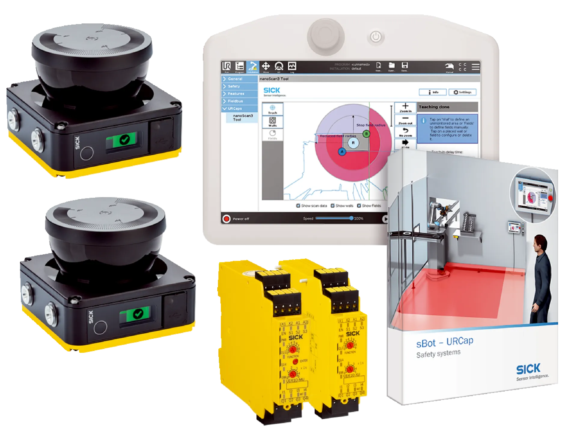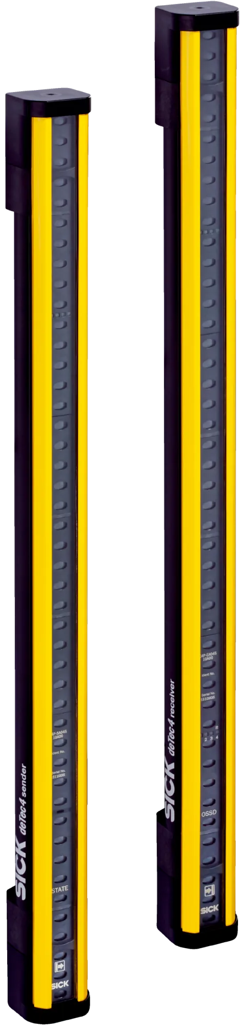 - deTec4 / deTec2 — защитные световые барьеры Type 4 / Type 2, разрешение 14 или 30/14 мм, высоты полей 300–2100 мм, интеллектуальные функции (IO‑Link, NFC, системные плагины) для монтажа и диагностики.