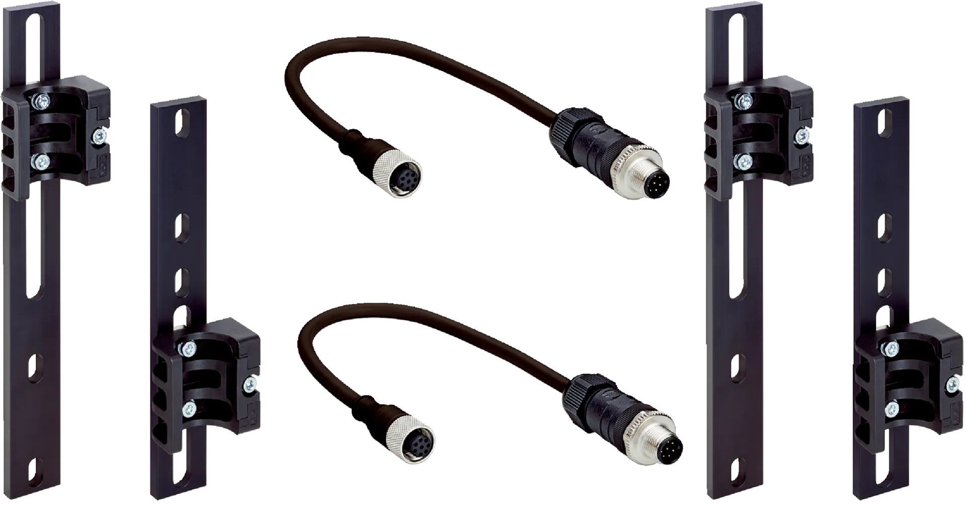 - Y‑ и T‑splitters — M8/M12, 3/4/5/8‑pin; для распределения сигналов и питания между датчиками; ключ — прямые и угловые исполнения с вариантами с ответвлением/без.