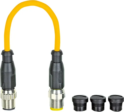 - Кабели и готовые жгуты — Pre‑assembled cable / Cordsets (M8, M12, M23, RJ45) до IP67/IP68, длины по метру и стандартные монтажные длины; применяются для подключения датчиков, исполнителей и контроллеров.