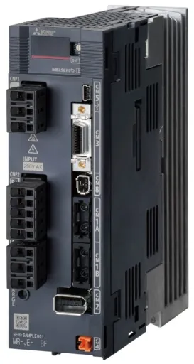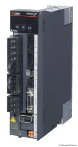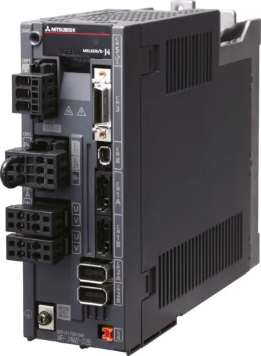 - Сервоприводы и сервосистемы — MELSERVO‑J5, MR‑J4, MR‑JE, MR‑JN: усилители и ротарные/линейные/прямые двигатели; мощности ~0.1–7 кВт (200/400 V), абсолютные энкодеры и автотюнинг для высокоточного позиционирования.
