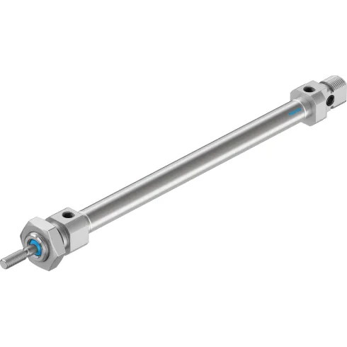 Пневмоцилиндр Festo DSNU-8-100-P-A имеет резьбовые отверстия на концах для крепления, что облегчает его установку в системе и позволяет легко соединять его с другими элементами оборудования.
