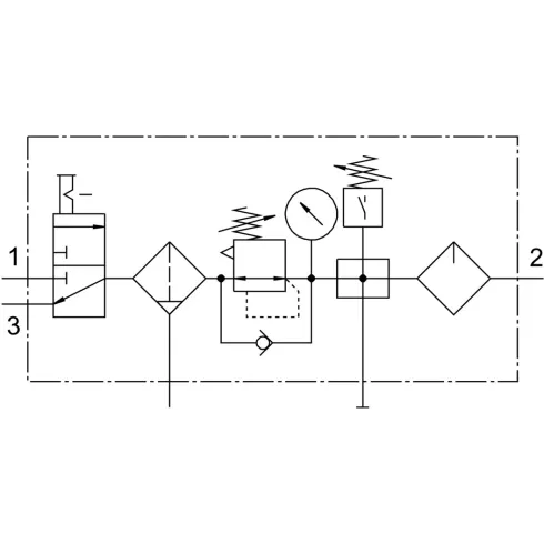 Блок подготовки воздуха Festo FRC-3/4-D-DI-MAXI-KC включает в себя фильтр грубой очистки, фильтр тонкой очистки и фильтр угольного адсорбера.