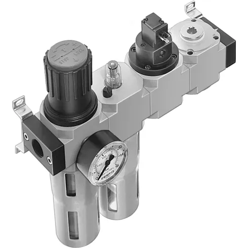 Технические параметры этого блока включают в себя высокую эффективность фильтрации, гарантирующую чистоту воздуха, а также точную регулировку давления и распыления масла для оптимальной работы пневматических систем. Благодаря инновационным технологиям Festo, устройство обеспечивает стабильную работу и долгий срок службы, что делает его отличным выбором для вашего производства. - Блок подготовки воздуха Festo FRC-3/4-D-DI-MAXI-KE-A— комбинация устройств для очистки воздуха с маслораспылителем. Для устройства в линейке продукции Festo есть более современная альтернатива — блок подготовки воздуха серии MSB.