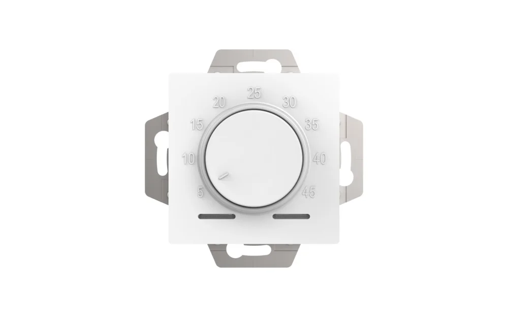 Управление температурой осуществляется с помощью вращающегося механизма включения/выключения (On/Off), а регулировочная характеристика термостата — PI (пропорционально-интегральная), что обеспечивает более плавное и стабильное поддержание заданной температуры пола без резких колебаний.